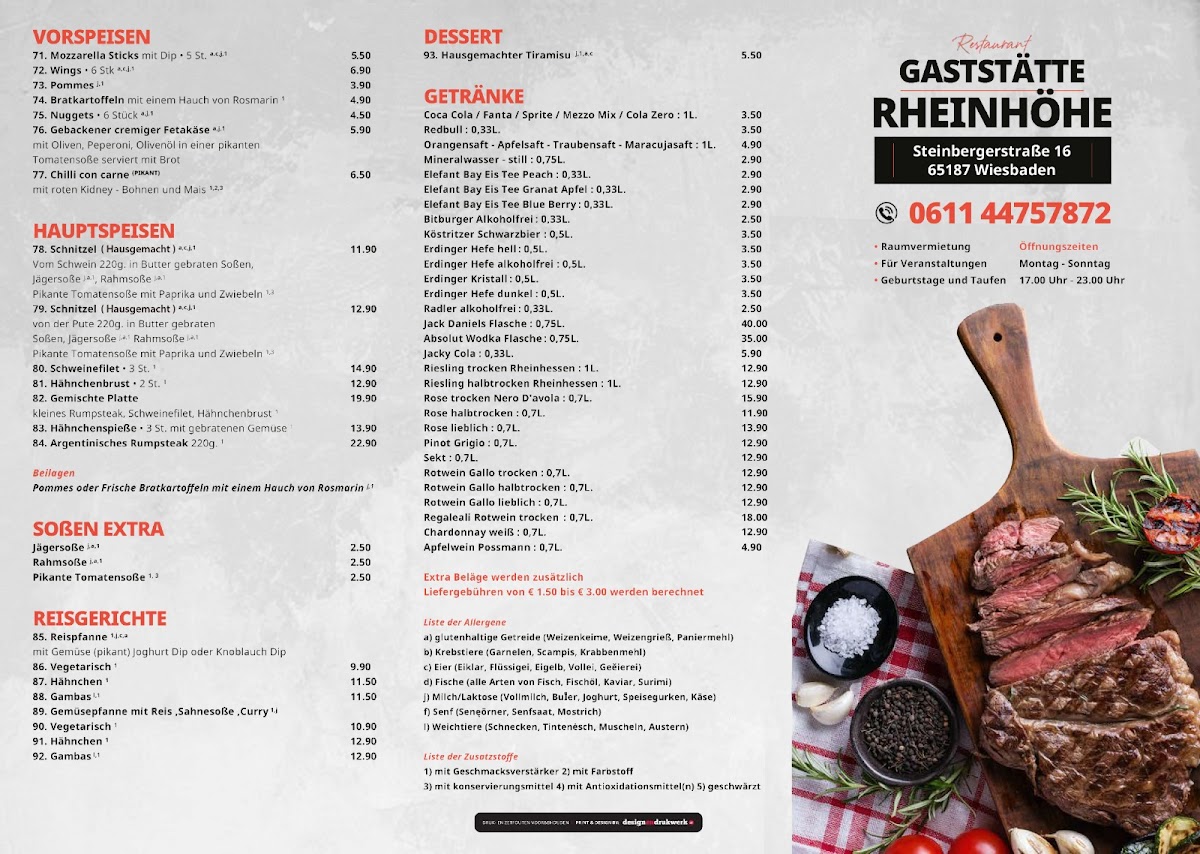 The service is equally commendable, combining a friendly demeanor with efficiency, creating a welcoming atmosphere for all. Whether you’re dining in or enjoying delivery, this restaurant genuinely appreciates its customers, making Gaststätte Rheinhöhe a dining experience not to be missed.